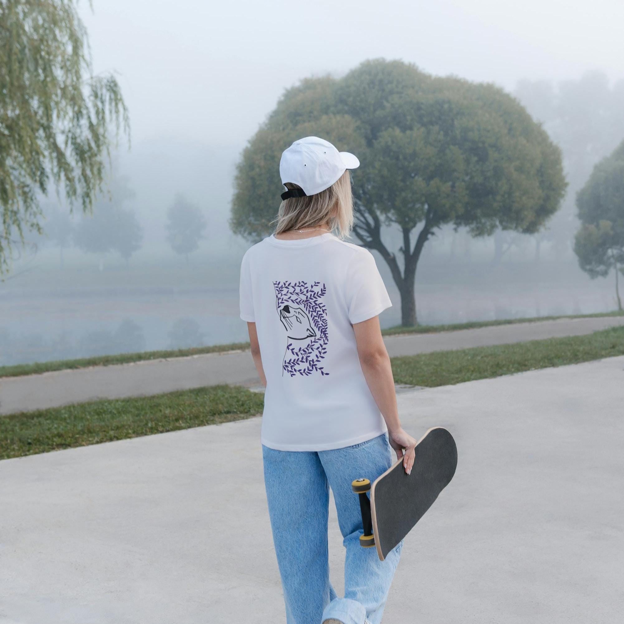 The Cat Botanical T-Shirt by Yaestharte is a refined blend of minimalism, softness, and artistic expression.