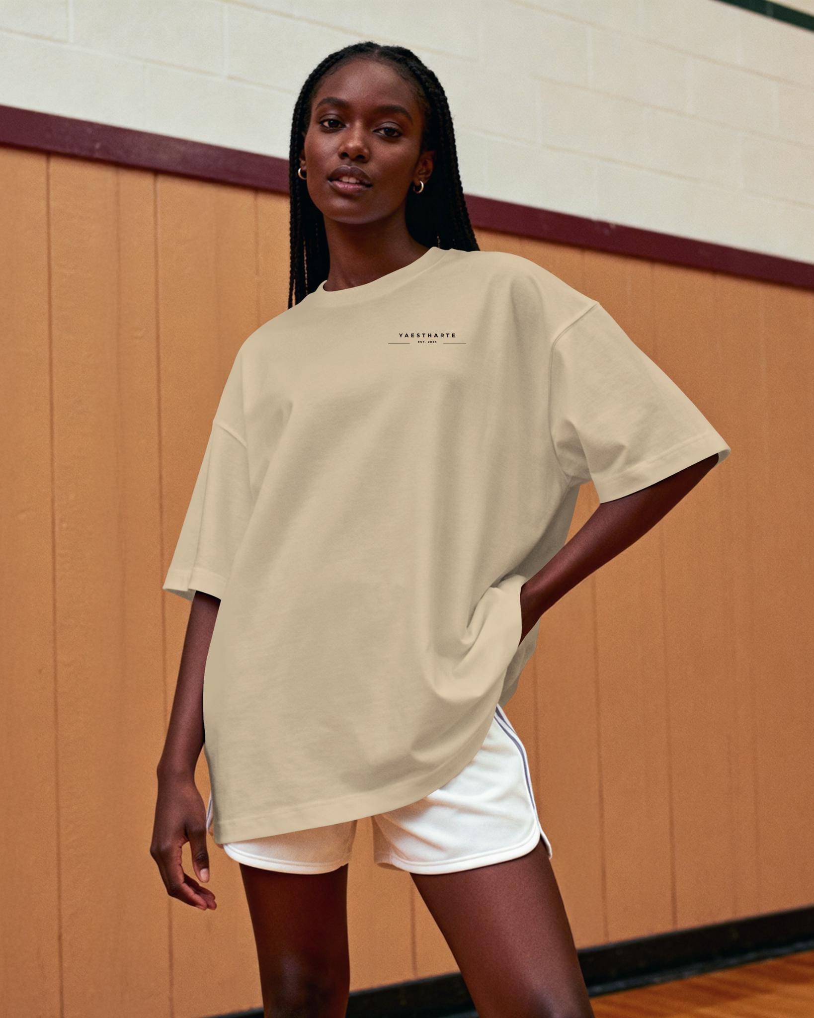 The relaxed silhouette offers a flattering, effortless fit that drapes comfortably, making it ideal for everyday wear. Whether styled casually or paired with elevated pieces, this t-shirt brings a modern, feminine touch to any look.